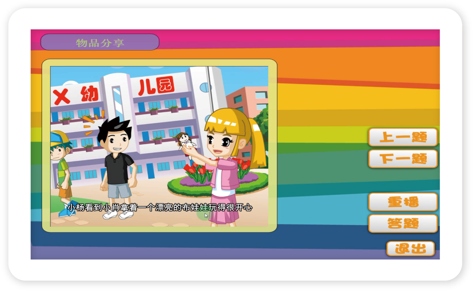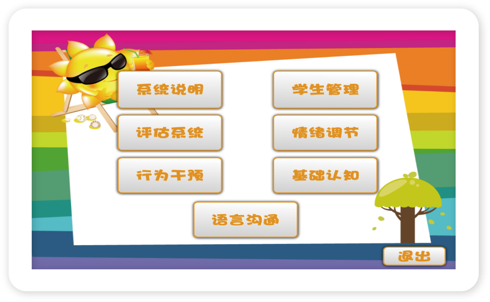 运用心理学发展规律原理,利用多媒体实时反馈技术,通过富有吸引力、感染力的视听影像,使用循序渐进的干预模式,对情绪行为进行直接或间接的实时干预,干预内容涵盖肯定及否定,由抽象到具体,由激活到缓解,认知、诱导、纠正等各种干预模式,诱导儿童对其自身的情绪作出适当的调节,使其接受现实、恢复功能、克服障碍,从而消除或缓解情绪行为障碍,帮助激发潜能,掌握一定生活交往技能,提高其环境适应能力,重新回归社会。